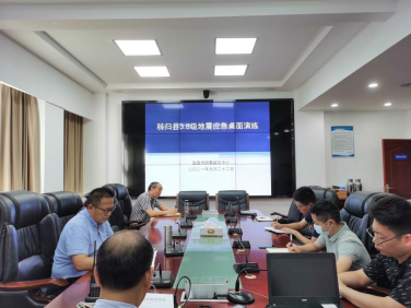演练假定当日14:10,宜昌市境内突发3.8级地震,值班人员立即发布通知,宜昌市防震减灾中心全体干部职工迅速到岗召开紧急会议,通报震情、评估灾情,宣布启动应急预案,并按综合协调组、现场工作组、震区组对人员进行编班分组部署。