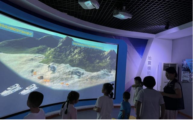 “地震是一种自然现象,是地球在不断变化的过程中积累了巨大的能量,在地壳脆弱地带发生破裂,形成了地震……”讲解员逐一向大家介绍了地震的形成以及地震带分布情况,并通过地球内部构造模型、地震波的模拟道具等,让小朋友们更直观的了解地震知识。随后,小朋友们体验了地震模拟小屋、地震知识抢答等互动性项目,“身临其境”学习防震减灾知识,掌握应急避险技能。