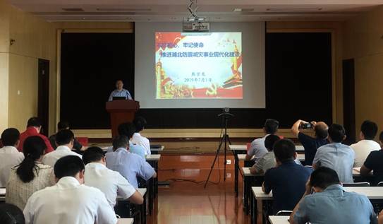 7月1日,为庆祝中国共产党成立98周年,学习贯彻习近平新时代中国特色社会主义思想和党的十九大精神,开展“不忘初心、牢记使命”主题教育,我学会理事长熊宗龙同志以“不忘初心、牢记使命,推进湖北防震减灾事业现代化建设”为题,为湖北省地震局全体党员讲了一堂生动的党课。
